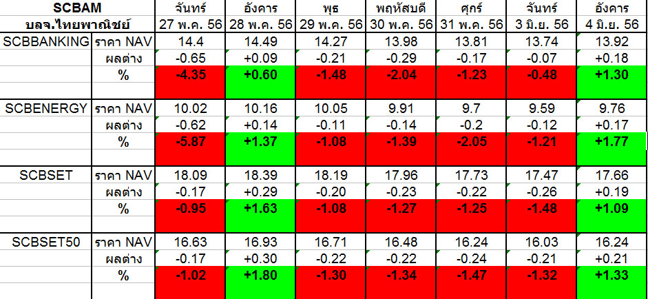 {กระทู้มุงกองทุน} รายงานราคา NAV และพูดคุยกันเรื่องกองทุนหุ้น กองทุนตราสารทุน ตราสารหนี้ค่ะ 4 มิ.ย. 56 เขียวจริงหรอ?
