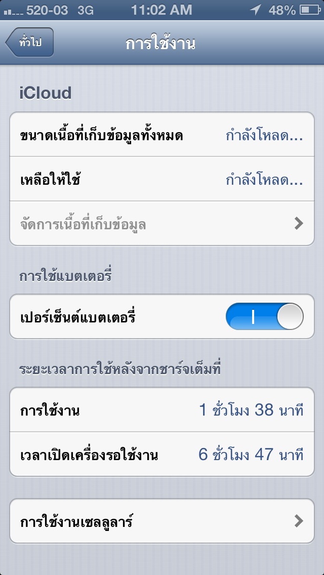 ส่วนตัวผมอัพแบบผ่าน itunes แล้ว reset all ไปหนึ่งรอบ ใช้งานเรื่อยๆ 3G เปิดตลอด ในภาพชาร์จทิ้งไว้เมื่อคืน ตื่นมาถอดปลั๊ก 9 โมงเช้า ถือว่าปกติไหมครับ