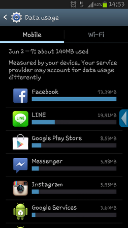 เมื่อเข้าไปดู Data Usage ในเครื่องซึ่งมันจะบันทึกอัตราการใช้เน็ทเวิร์กของเครื่อง ก็พบว่าใช้เพียง 140MB ตามภาพ