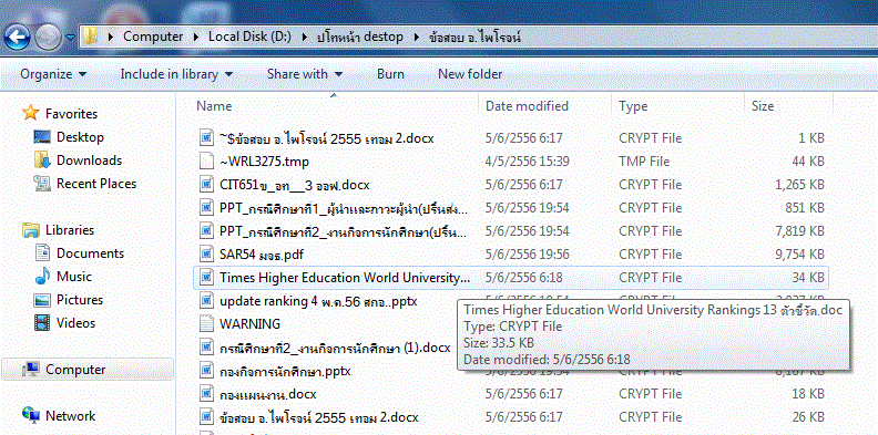 ไฟล์เอกสารทุกอย่าง Type เป็นนามสกุล .crypt