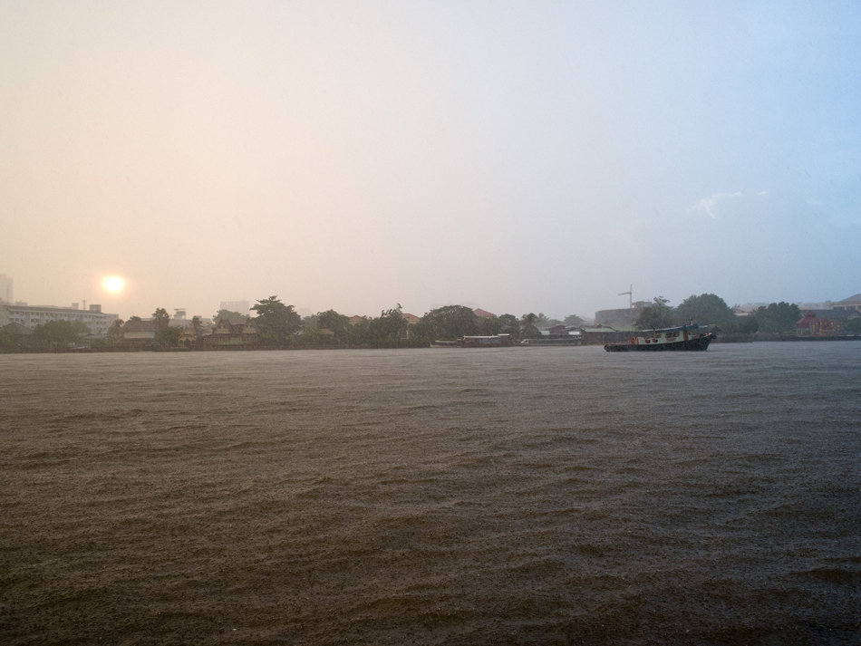 โชว์ดีผมพกร่มตลอด ฝนตกเลยยังมีโอกาสกางร่ม ถ่ายรูปได้บ้าง ฟ้าเป็นสองสีแบบในรูปเลยครับ ฝนปลิวสาดมาทางสะพานพระปิ่นเกล้า ส่วนด้านสะพานพระราม8 ฟ้าโปร่ง อย่างที่เห็น