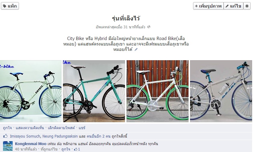 อยากได้ จักรยานไฮบริด หรือ เสือหมอบ ก็ได้สวยๆ งบ 7000-8000 เกินได้นิดๆหน่อยๆ คับ ผมดูๆ https://www.facebook.com/media/set/?set=a.177436502409771.1073741836.169622649857823&type=1 แล้วก็ scotch ร
