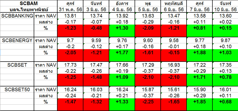 [กระทู้สำรองมุงกองทุน] รายงานราคา NAV กองทุนดัชนี และ พูดคุยเกี่ยวกับกองทุน , หุ้น ทุกประเภท ประจำวันที่ 10 มิ.ย. 56