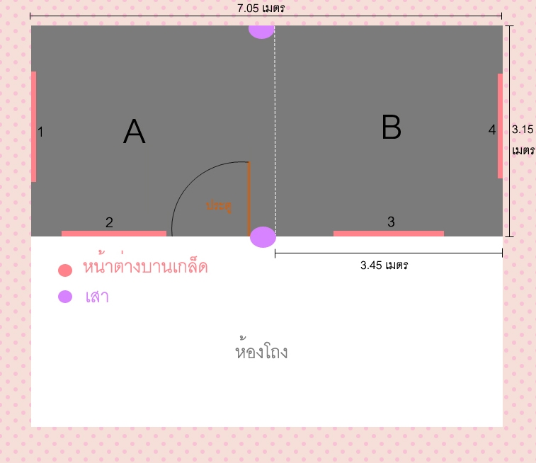 เลยอยากก่อกำแพงกั้นห้องตามรอยเส้นประสีขาว เพื่อเอาห้อง B ทำเป็นห้องแอร์ทำงานแล้วก็เลี้ยงเด็ก
