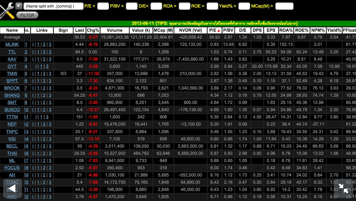 กำลังเลือกหุ้นครับ จากอันดับ P/E น้อยสุดวันนี้