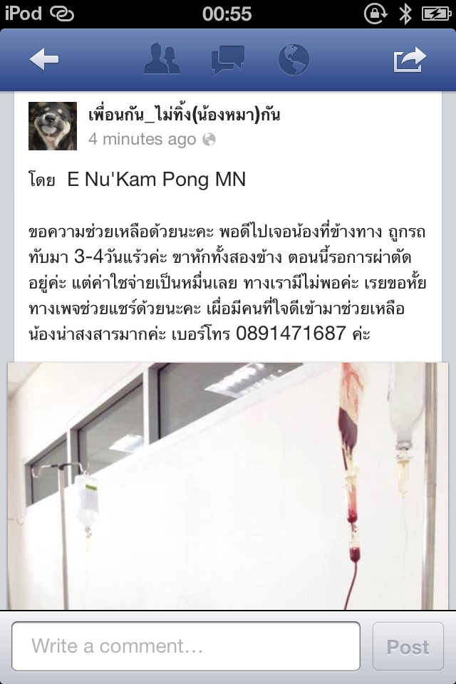 คือเราเจอจากเฟสบุ๊คค่ะ น้องหมาน่าสงสารมากตัวนี้ค่ะ มีรูป