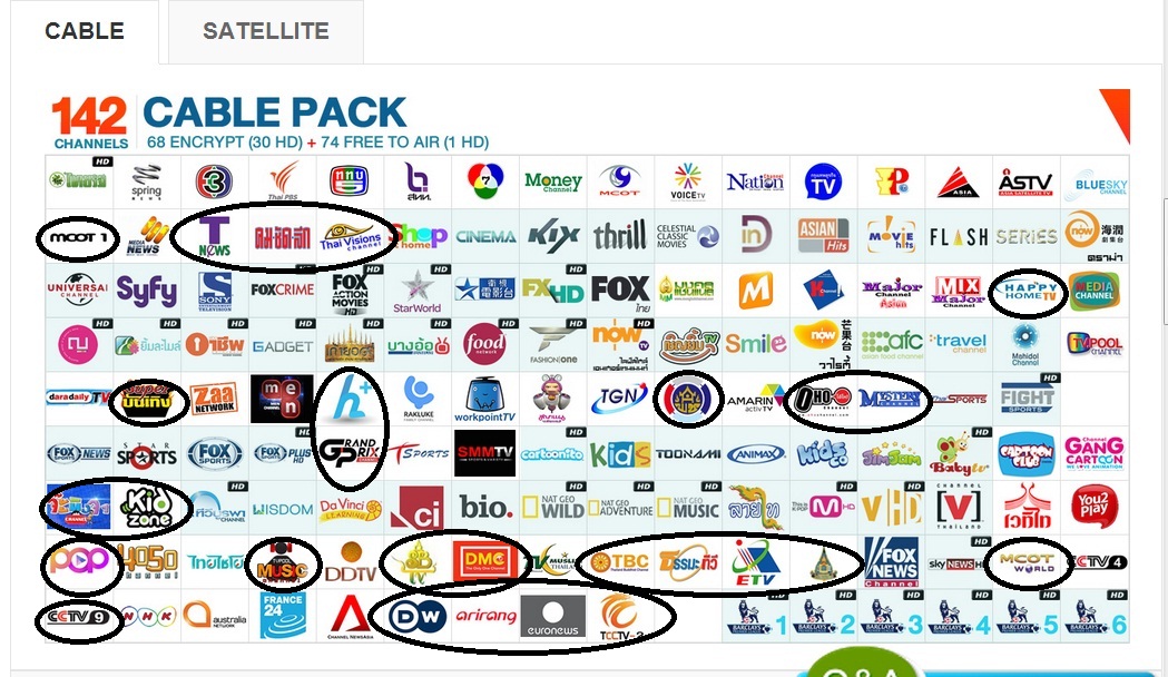 ***ที่วงไว้ คือช่องที่ระบบดาวเทียมไม่มีให้ดุ แต่ระบบเคเบิลมีให้ดูนะครับ