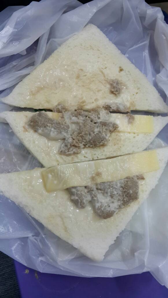 น้องสาวไปซื้อแซนวิชของโออิชิที่เซเว่นมา ข้างในมีมาให้แค่เนี้ย ราคาก็ไม่ใช่ถูกไมมีไส้ให้น้อยจัง หรือมันควรเป็นแยบนี้แต่เราไม่รู้เองนะ