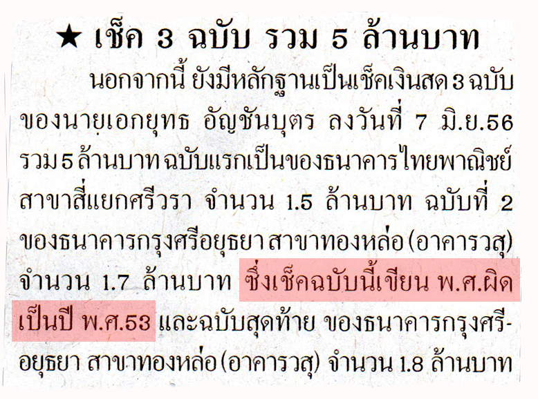 เช่น ขอกุญแจกับพี่สาว และที่ชัดเจนที่สุดคือ การที่เขียนเช็คฉบับหนึ่ง ลงปี พ.ศ