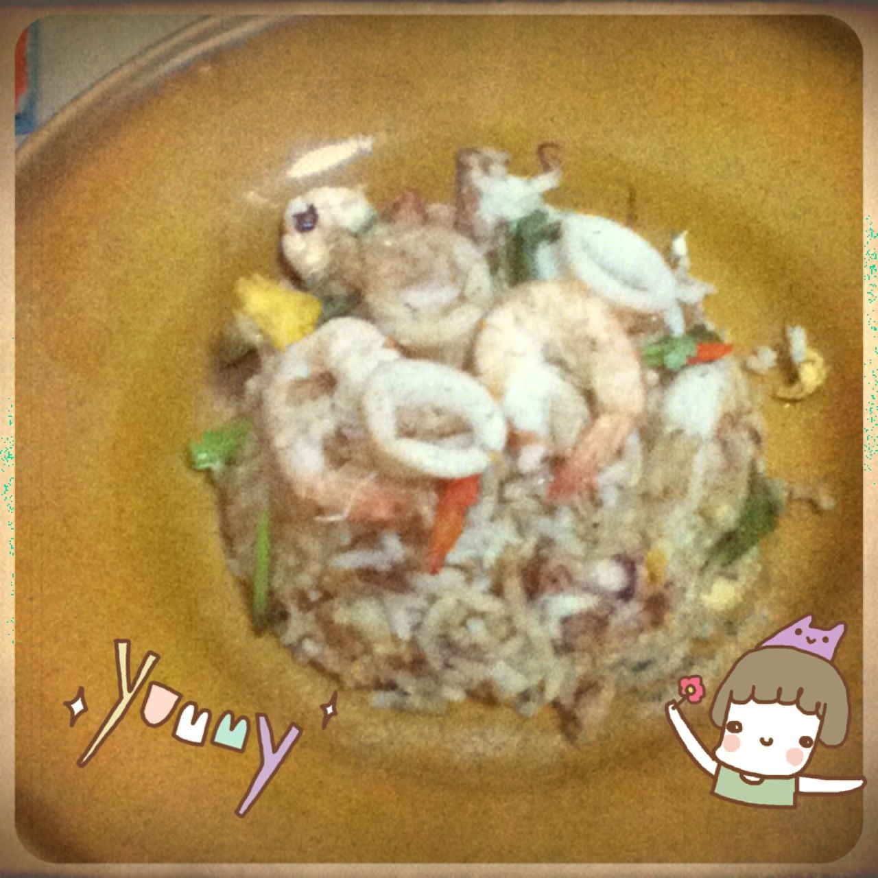 ข้าวผัดต้มยำทะเลคะ เราทำเองเลยนะ ใส่ปลาหมึกไม่ยั้งมือ แถมด้วยกุ้งตัวโตๆ2-3ตัว คะ อิ่มมากเลยคะตอนนี้