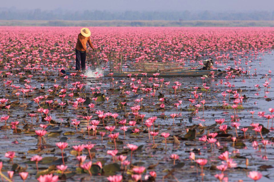 ทะเลบัวแดง หนองหาน อ.กุมภวาปี จ.อุดรธานี แหล่งท่องเที่ยวบ้านผม