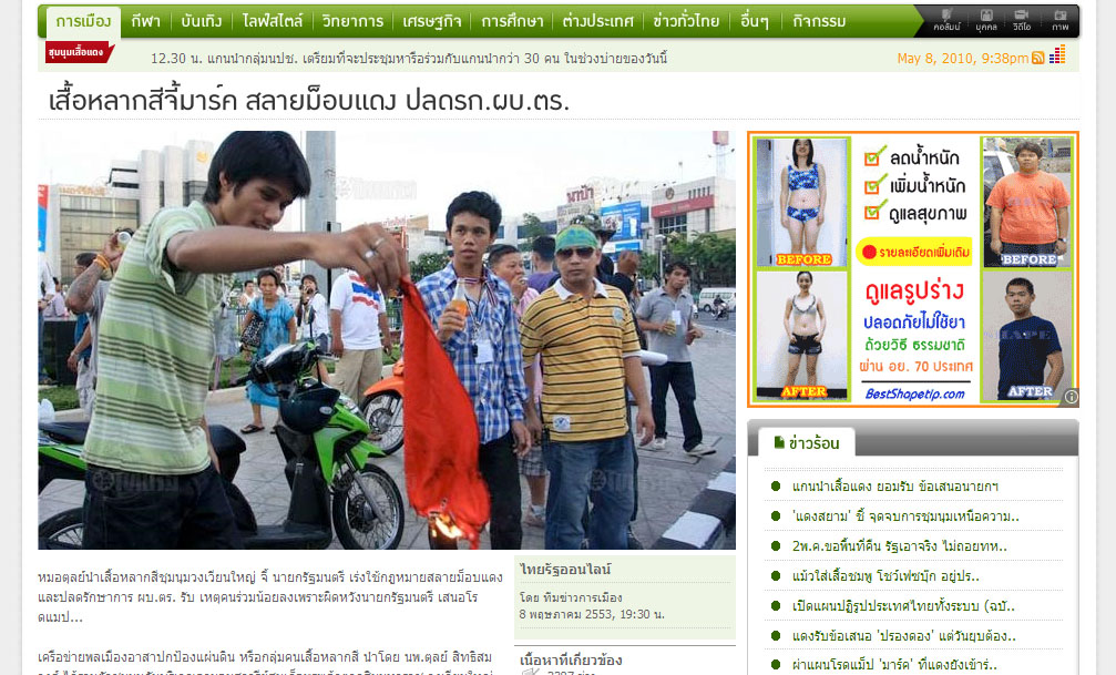 http://www.youtube.com/watch?v=Ryj0ocmQhAk ถึงควายแดงผู้รักธนาธิปไตย (เขาออกเสียงเพี้ยนไปเพราะกินหญ้าว่า ประชาธิปไตย) จะมาต่อสู้ทำไมครับ นั่งหน้าคอมรับตังค์ผมว่าหางานใหม่นะครับ ส่วนคนว่าที่ประเทศนี้