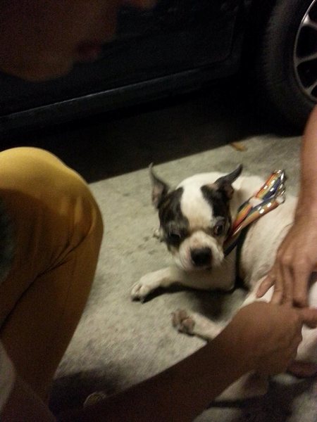 หมาสีขาวน้ำตาลดำ พันธ์ไทยคล้ายบีเกิล พิกัดเดอะบลูม หลงมาตั้งแต่เมื่อคืนที่ฝนฟ้าตกหลัง เหมือนเคยใส่ปลอกคอมาก่อนแล้วหลุดหาย สั่งไหว้และให้รอได้ รปภ.ไล่และตี ตอนนี้ออกมาอยู่วินมอไซน์หน้าเดอะบลูม. พร้อม