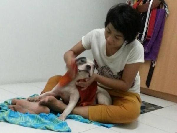 ภาพแรกนี้ จขกท. ไม่ขอปิดหน้าผู้ที่ได้ชื่อว่าปิดทองหลังพระ เพราะน้องคนนี้และเพื่อน ได้ไปเจอเจ้าตัวนี้ตอนที่แท็กซี่เอามาผูกไว้เพราะต้องวิ่งรถไปส่งผู้โดยสาร น้องคนนี้ได้ซื้อยามาให้น้องทาน พาขึ้นไปที่ห้องเพื่ออาบน้ำ(ที่พักไม่อนุญาติให้เลี้ยงและและนำสัตว์เข้าบริเวณ555+คิดเองนะค่ะว่าทำอย่างไร)และดูแลอย่างอื่นดีมาก และนำคืนให้แท็กซี่ต่อจากนั้นแท็กซี่ก็เอาไปให้เพื่อนเพราะหมาวิ่งไล่ไก่ของแท็กซี่