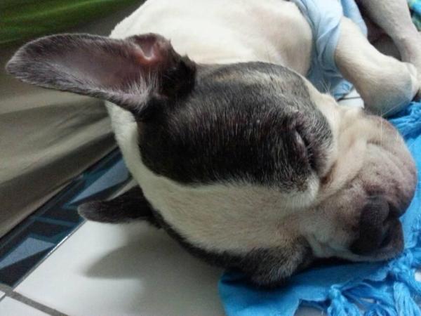 อาการที่พบ : ฝีแตกแล้วที่บริเวณด้านหลังแถวหาง(เหม็นมาก) ทำให้ไข่น้องบวมมากและตาอีกข้างมีขี้ตาเยอะ และไม่มั่นใจว่าตาจะบอด 1 ข้างด้วยค่ะ
