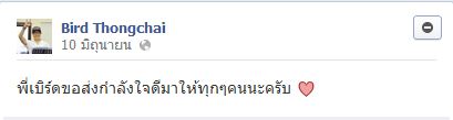 ::กำลังใจดีดีที่เรามีให้กันจะเป็นแบบนี้ตลอดไปค่ะ หลายคนเคยถามแฟนคลับทำไมต้องทุ่มเท่ พี่เบิร์ดพูดเสมอว่าความรักที่แฟนๆมีให้คือความรักที่บริสุทธิ์ เป็นความรักที่ไม่ได้ต้องการอะไรมากมาย