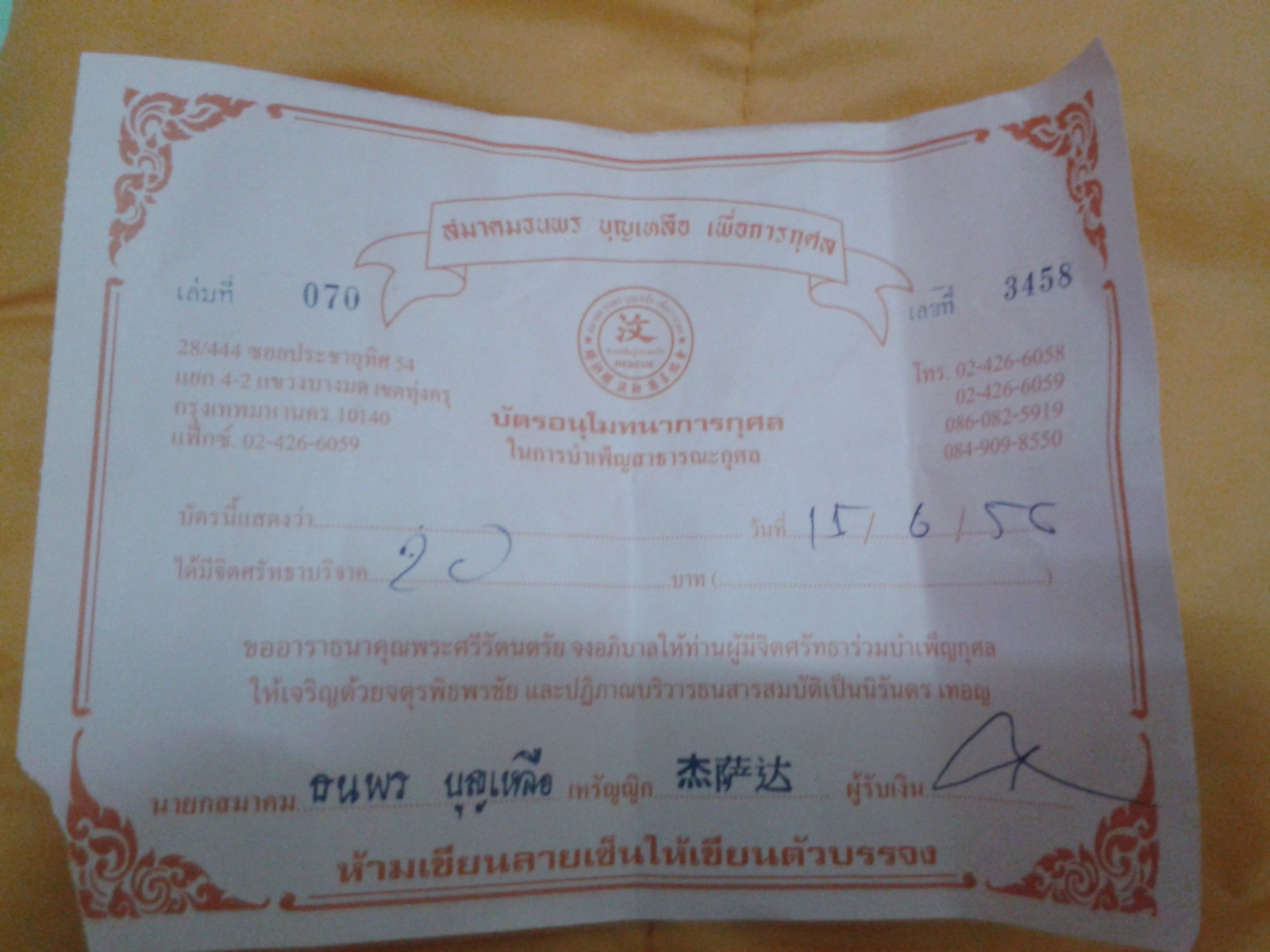 (เล่าแอนด์แชร์)ใบอนุโมทนา