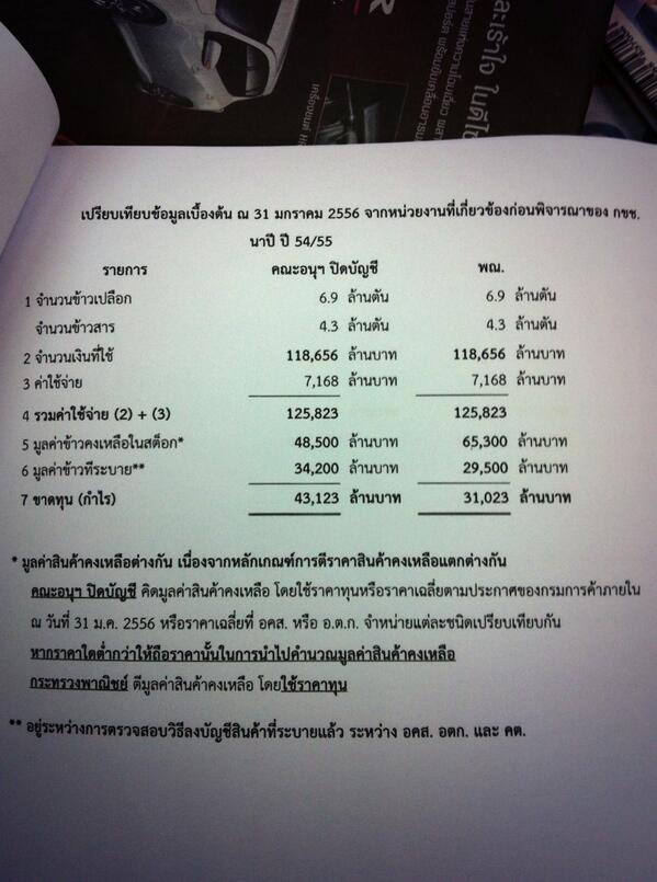 หลักฐานที่ผมว่าควรจะมาจาก ปปช., ผู้ปิดบัญชี (นางสุภา), อคส., สมาคมผู้ส่งออกข้าว, กระทรวงพาณิชย์, กระทรวงการคลัง, ธนาคาร แห่งประเทศไทย และควรมีเป็นหนังสือราชการ มีคนเซ็นรับผิดชอบตัวเลขนั้นด้วย นอกนั้น
