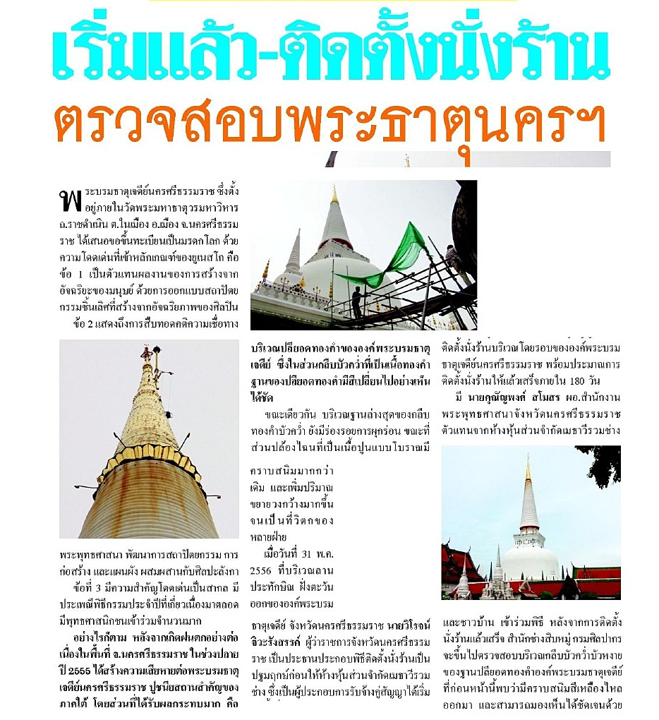 เริ่มแล้ว - ติดตั้งนั่งร้าน ตรวจสอบพระบรมธาตุนครศรีธรรมราช