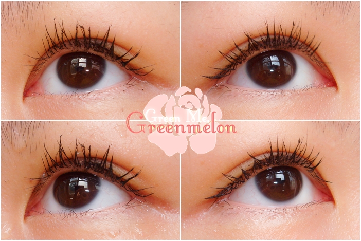 อันนี้ปัดด้วย Enamel Glamour เริ่มจากขนตาเปล่าๆที่ดัดเอาไว้เฉยๆทางด้านซ้าย --> ปัดหนึ่งครั้ง --> สองครั้ง