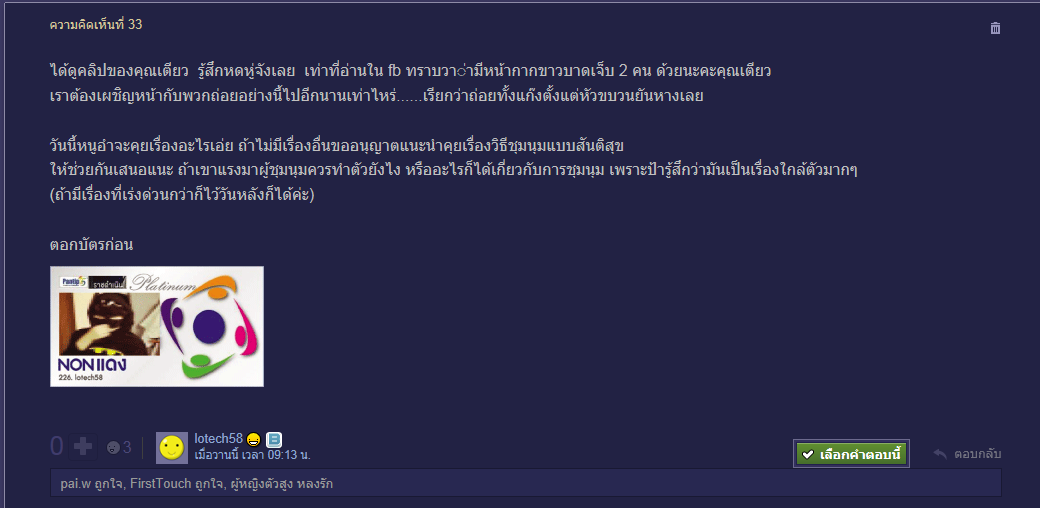 [Spoil] คลิกเพื่อดูข้อความที่ซ่อนไว้001 ข้างบูรพา /002 เขียวใสแสง /003 ปลงไม่ตกซะที /004 badboysII005 /คุณtonguzz /006 โพ้นฟ้า /007 อำก /008 ไป่ฉี /009 joecth2003 /010 Jung Eun Cute /011 คนชาย /012 เพียงออซออู้ /013 natsumichan /014 ซอนต๊อก /015 คุณเด็้ทัน /016 คุณปางมะผ้า /017 เก่ง-ชุมแสง /018 ม่วงคัน /019 มุสตาฟา /020 ตระการฟ้า ตระกองขวัญ /021 แอ๊บแบ๊ว /022 ++ตันหยง++ /023 arpond2518 /024 จอย20 /025 Thyrocyte /026 Winged /027 confront /028 Mr. DK /029 peace_life /030 อัตตสิกขา /031 Wanalee /032 ผ้าขาวบาง /033 สาวญี่ปุ่น /034 สมดั่งฤทัย /035 แกงป่าปลาเห็ดโคน /036 อะมิกดารา /037 เลอคูเดอลาแมร์ /038 หมอคานู /039 ผู้ชายธาตุลม /040 มัจฉาร่วมข้อง /041 โป๊งเหน่ง_NB /042 ทนายเนติบัณฑิตคนหนึ่ง /043 ประชามีสุข /044 burapong29 /045 ดักไซแห้ง /046 โชคชะตา /047 candy_mania /048 jub25 /049 อดีตหัวหน้าเผ่า /050 ใต้บูรพา /051 จำเริญ /052 pspeed /053 เอจังงัง /054 ผมเองะ /055 T-H-F-C /056 Wachirawit /057 MT7KK /058 สวยจริงอะไรจริงรักบ้างอะไรบ้าง /059 ผึ้งน้อยพเนจร /060 paper punch /061 จากป๋า /062 onisan /063 กังหันฟ้าขาว /064 itonn /065 NewSouthwales /066 สาวกรกฏ /067 เจ็ดเสมียน /068 ajs /069 โนบิตุ /070 mum@moo /071 หนอนข้าวโพดอ่อน /072 ไกด์ไม่เก่า /073 papa-chai /074 Chiyuri /075 รักจริงหวังแต่ง /076 kumiko-put08 /077 ชาร์ อัสนาเบิ้ล /078 Tu Tae /079 ผู้หญิงดีดี /080 mayumijung /081 scoreboard /082 tarthewise /083 You so cute /084 หมอไฟฟ้า /085 vadi /086 นักวิจัยความฝัน /087 วอน /088 พริ้วไหวไปกับสายลม /089 ๋ย ๋ย /090 Toh loneliness /091 เหลืองลาย /092 ไม่ได้หยิ่ง! ที่จริงอะผมอาย /093 พระรถ /094 tonythebest /095 เฮียแจ๊ค /096 สิงโตยนต์ /097 Proton /098 รักเธอเสมอ_ที่รัก /099 psaekim /100 kobkradad /101 ตองเค /102 phoosana /103 fado /104 เจ้าเด็ก /105 Familie /106 King_Baboon /107 Dovahkiin /108 JayLouise /109 ดารวี /110 แมวมีหนวด /111 ตัวกลมแก้มป่อง /112 เอ..ชีวิตมันขาดไรไปน๊า /113 เชื่อเมียแล้วเจริญ /114 Raining Man /115 man1nat /116 Chocolate Sunday /117 wamiko /118 my name is outschool /119 ลมหัวด้วน /120 Birdy Sricha /121 OSK29560 /122 Mccain /123 Craft-Fish /124 internetsmile /125 ดวงใจที่ใสกระจ่าง /126 TRANSFORMATION /127 ชายชรา หมายเลข 5 /128 คุณชายประสิทธิ์ /129 บรรลุ /130 หมวยอินดี้ /131 อย่ามาหลงรักนะ /132 หนุ่ม ณ เมืองนนท์ /133 Evertonion /134 บ่อเมี้ยสี /135 ฮักกี้ /136 New_BlackCat /137 joke_bangkok /138 เสี่ยสมัครเล่น /139 ll - N o b U - ll /140 Orrakata /141 คนของแผ่นดิน /142 Cafe Inn /143 rocky mountain /144 member28 /145 จ่าเน่า /146 อู๋ซ่า /147 เชร็ค 3 /148 นายบังเอิญ /149 jkss1707 /150 ลูกครูจุล /151 annijung /152 เมนูรสจืด /153 enok06 /154 Sorn มาคับ /155 cottonfactory /156 Nider /157 คนเดียวไม่เหงาเท่าสองคน /158 myimy /159 primal fear /160 dca/161 วันดี_วันดี/162 mikatsuki /163 ปั้นจิ้มปั้นเจ๋อ /164 zongkung /165 ใต้เงามัจจุราช /166 ป้าเล็กขี้บ่น167 /คนดีผีคุ้ม /168 เอ๊กกี่169 /gw 170 /นกไร้ขน /171 สุรพัดผ่าพล /172 OKANEMOCHI /173 mototrax /174 เสี่ยหรอย /175 Noopy&Wood /176 Angleevil /177 Goodew /178 Zona /179 Jib_seng_panich /180 หินแห่ /181 suwanchai /182 ชวนกันไปไหน /183 เจ้ากก /184 ทวน ทุ่งคา /185 hyacin /186 lady grey/187 Mr_L /188 ฟ้ากับเหว /189 หนุ่มโพธิ์ทะเล /190 Batman76 /191 KafuSe /192 Virtue mode /193 ป้าไปเที่ยวด้วยคนค่ะ /194 แอลกอฮอลเรด /195 CNTR /196 รัสปูตินี /197 เปรี้ยงเปรี้ยง /198 ริปูสลาย /199 ดับอนาถ/200 กระหายรู้ /201 ไผ่เหลือง/202 ท่ามะโอ /203 chelsit /204 Thirdwave /205 ^..^makoto /206 innova2009 /207 พลสาธุ /208 jfk007 /209 toeydays /210 swibul /211 neajay2549 /212 minasai /213 บุษกรจันทร์ /214 Raycer_X / 215 ลำลูกกาคลองสาม /216 Meaw Maw /217 paefah 218/ นู๋ต้นข้าว /219 หมูสะเต๊ะกับน้ำจิ
