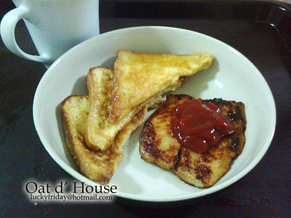 ซ้ายหนมปังชุบไข่ทอดราดน้ำผึ้งชุ่มๆ