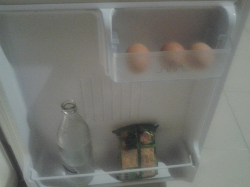 เห็นด้วยหางตา ว่าคุณลูกน้องบังเกิดเกล้า หิ้วอะไรมาใส่ตู้เย็น จากนั้นก็ไม่ได้สนใจละ