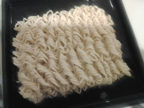 แกะมาม่าใส่จาน ค่อยๆราดน้ำร้อนแก้วแรกอย่างละเมียด ทิ้งไว้แป๊บ กลับอีกหน้าลงแช่ กะว่าพอนิ่มๆกรุบๆ(อึ๋ย) ก็เอาขึ้นมาใส่แก้วเปล่าไว้