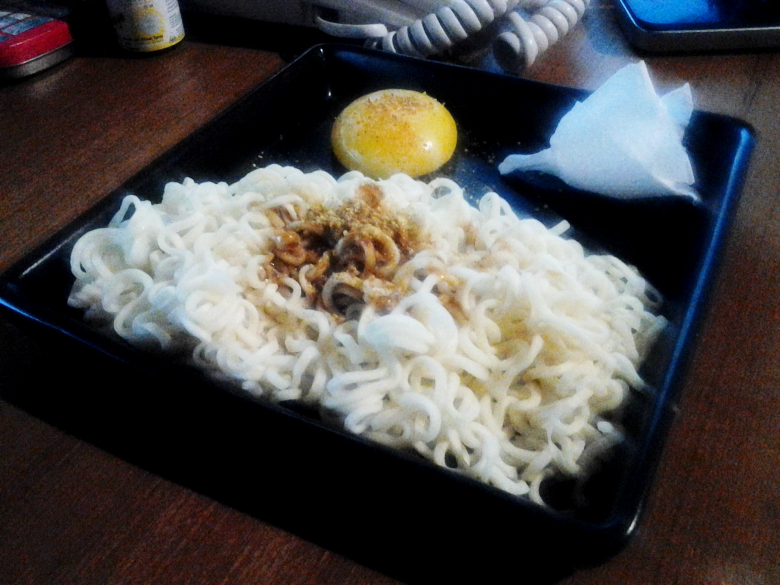 อืม... ทางเลือกคงมีไม่มาก คงต้องป่นๆบะหมี่ใส่แก้ว ตีๆไข่ใส่ตาม แล้วใส่น้ำร้อน อึ๋ยยย