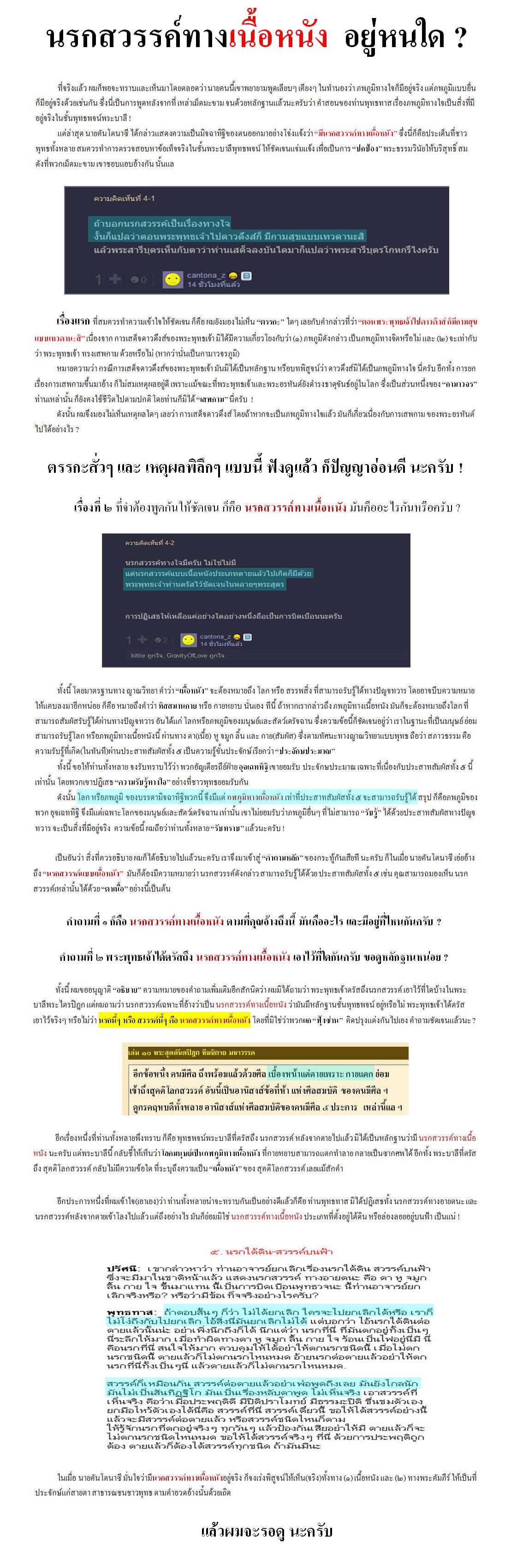 จากการอ่านฟัง ผู้ประสบเหตุเฉียดตาย หลายคนบอกเหมือนปิดไฟ ดับมืดสงบเงียบสนิทอวสานจบบริบูรณ์ ไม่ได้ไปต่อที่แห่งไหน ชาวพุทธอย่างผม หากคิดหรือรู้สึกเช่นนี้ ถือว่า ไม่ใช่ชาวพุทธที่แท้จริง ไม่เชื่อในคำสอนของ