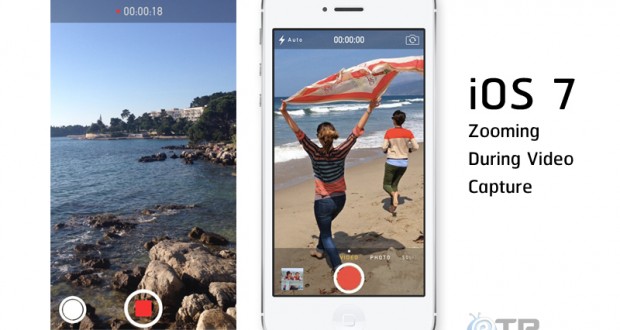 ระบบปฏิบัติการ iOS 7 รุ่นเบต้าแรกที่ออกมานี้ ได้เพิ่มคุณสมบัติในการซูมเข้า-ออกด้วยนิ้ว ในขณะที่ถ่ายวีดีโออยู่ได้ด้วยกล้องที่มากับตัวเครื่อง