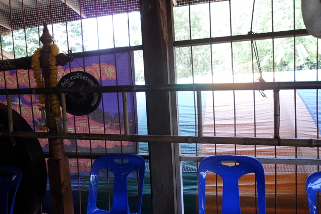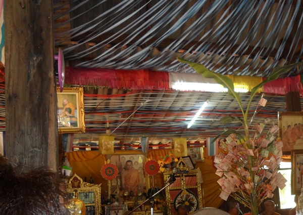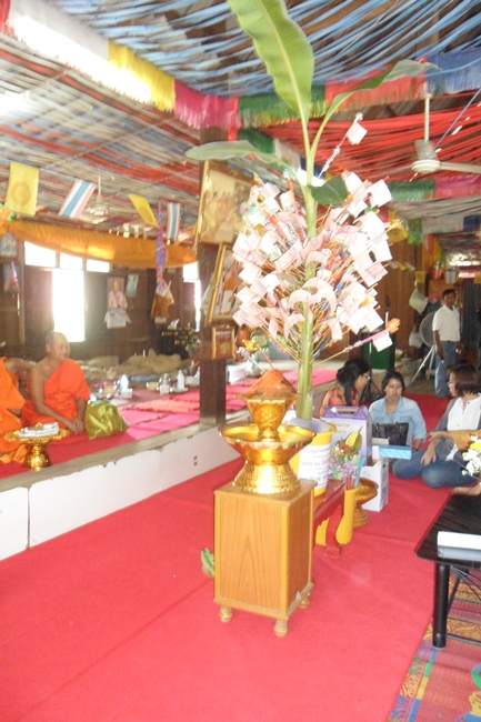 เจเอาบันไดไผ่ไปถวายวัดด้วยค่ะ  พาดถึงหลังคาศาลาเพราะยาวมาก