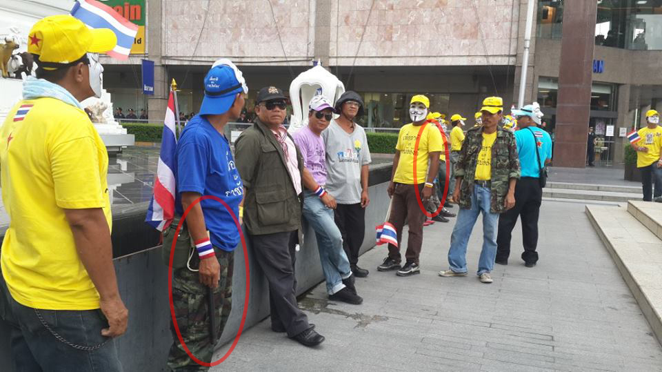แต่พวกหน้ากลาก/ขี้กลาก นี่จัดตั้งกลุ่มชายฉกรรจ์เตรียมอาวุธมาเป็นอย่างดี (กลุ่มชายฉกรรจ์อาจประกอบไปด้วยพวกหัวเกรียน นักรบใบกระท่อมเป็นส่วนใหญ่) และยังไม่นับรวมอาวุธอื่นที่อาจซุกซ่อนอยู่ในกระเป๋าสะพายทั้งหลายแหล่
