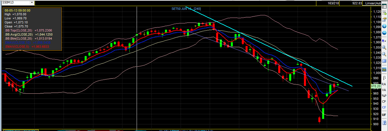 ส่งสัญญาณจะมีปรับฐานเร็วๆนี้ หุ้น บิ๊กแคป ปิดเขียวก็จริง แต่ทรงกราฟ ทำระฆังคว่ำ เกือบทุกตัว บางตัวหลุด เส้นเฉลี่ย 10, 20วันแล้ว S50z ชนต้าน 1088 ไม่ผ่าน หลายครั้งแล้ว ว้าวๆๆ