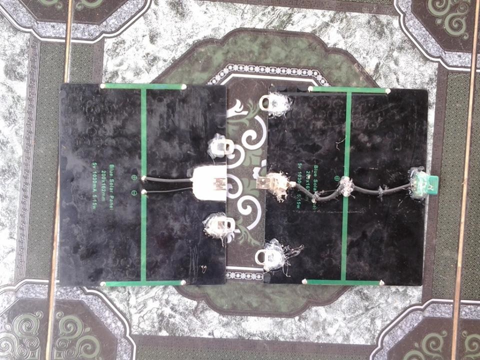 เป็น Solar panel 5v 1030mah สองตัวต่อ แบบขนาน....กลายเป็น 5v 2.06 A (สูงกว่า output ของ Adapter 0.06mah)