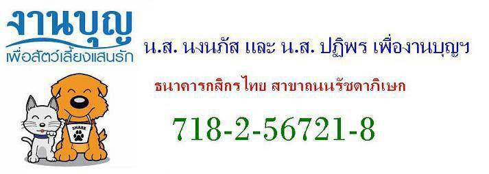 ท่านใดต้องการทำบุญให้กับสัตว์ด้อยโอกาส  สามารถบริจาคได้ที่เลขที่บัญชี