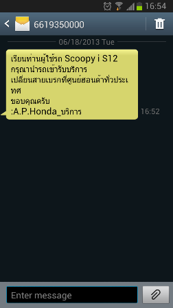 + ถึงผู้ใช้ Scoopy i S12 ครับ ได้รับ SMS กันหรือไม่ครับ? +