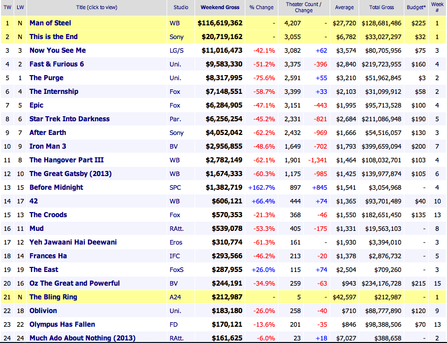 US BOX OFFICE June 14-16, 2013