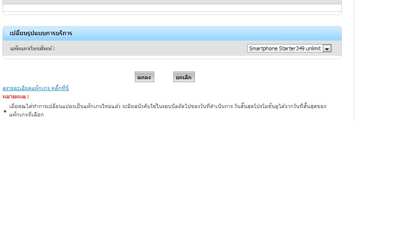 ปัจจุบันใช้แพคเกจหลักคือ Smartphone Starter Unlimited โทร120นาที, 299บาท/เดือน แล้วประมาณกลางเดือนที่แล้วเกิดอยากเปลี่ยนเป็น Smartphone Love Buffet 399 บาท / เดือน เลยไปกดเลือกเพื่อเปลี่ยนแพจเกจต่