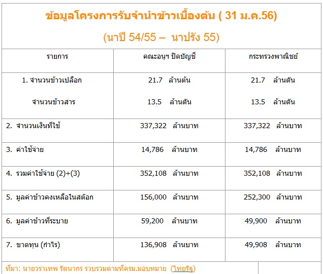 เปิดตัวเลข - ข้อเสนอแนะของ สศช. ต่อโครงการจำนำข้าว