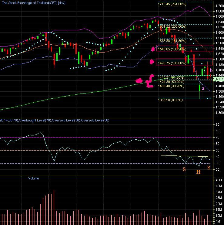ตามรูปเลยนะครับ ถ้าทะลุแนวต้าน head and shoulders reversal pattern ของ RSI ได้แนวโน้มจะเปลี่ยนนะครับ แต่ขอบอกว่าเป็นการ Rebound ของคลื่นเล็ก c ของเวฟ B ในคลื่น 3-3-4 เท่านั้นยังมีเวฟ C ตามมาอีกดังนั้นถ้าอยากเข้ารอบ Rebound ให้ดูแนวทะลุของ RSI ถ้าอยากคัทลอสได้ราคาลุ้นให้คลื่นเล็ก c ขึ้นไปทะลุแนวต้าน 1493.75 จุดให้ได้แล้วจะอธิบายรายละเอียดจุดจบรอบ Rebound นี้อีกครั้งแต่อย่างที่บอกนะครับจุดนี้มีโอกาสเป็นรอบ Rebound ครั้งสุดท้ายของเวฟ B เท่านั้น ถ้าไม่พร้อมจริงๆยังมีโอกาสรอขาขึ้นจริงอยู่ อยู่ที่ตัวเพื่อนๆที่จะต้องตัดสินใจนะครับ สำหรับ Nihaoman กราฟมีชีวิตครับ มีสุขมีทุกข์และเปลี่ยนแปลงได้ตามอารมณ์ของมนุษย์ ดังนั้นเราต้องพร้อมจะเปลี่ยนเช่นกันเมื่อกราฟเปลี่ยนไปหรือไม่เป็นอย่างที่คิด ถ้ามีอะไรเปลี่ยนแปลงจะเข้ามาบอกเพื่อนๆอีกนะครับ ขอพลังจงอยู่กับทุกๆคนครับ ^^