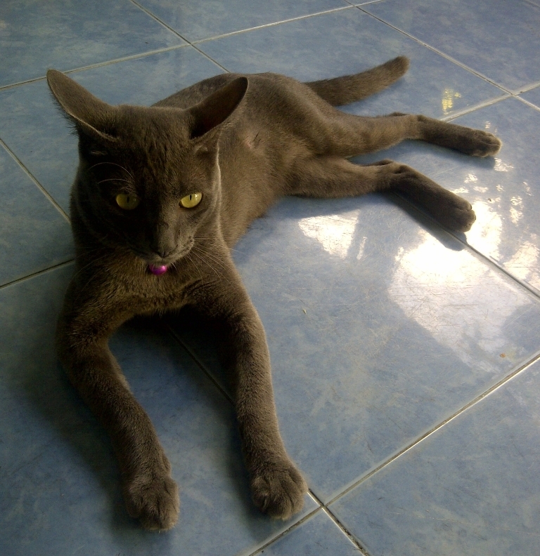 ภาพนี้มันกำลังกลัวฟ้าร้องเป็นที่สุดครับ ทุกครั้งที่ฟ้าร้องมันจะวิ่งหางจุกตูดตัวสั่นระรัวไปทั้งตัว ผมต้องคอยกอดมันไว้ ใจหนึ่งก็สงสารใจหนึ่งก็ขำสุดๆและก็วิ่งหนีมัน