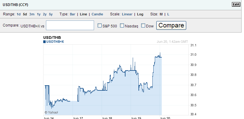 ถ้าบาทอ่อนลง 1 ดอลล่าร์ เป็น 32 บาท เวลาขายหุ้นออก เอาเิงินกลับบ้าน ค่าหุ้น 30 บาทที่ขายหุ้นได้ จะแลกได้ 0.968 ดอลล่าร์ ขาดทุนค่าเงิน