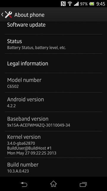 Xperia ZL Android 4.2.2 Jelly Bean update (10.3.A.0.423)