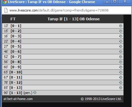 เป็นฟุตบอลกระชับมิตร แต่ยิงกันแบบไม่ถนอมน้ำใจกันเลย ล่อไปซะ 13 ประตู ต่อ 1 ( 1 ลูกได้จากจุดโทษอีก)