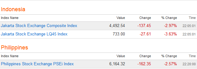 ตลาดหุ้นอินโดนีเซีย และฟิลิปปินส์เปิดลบกว่า 2%