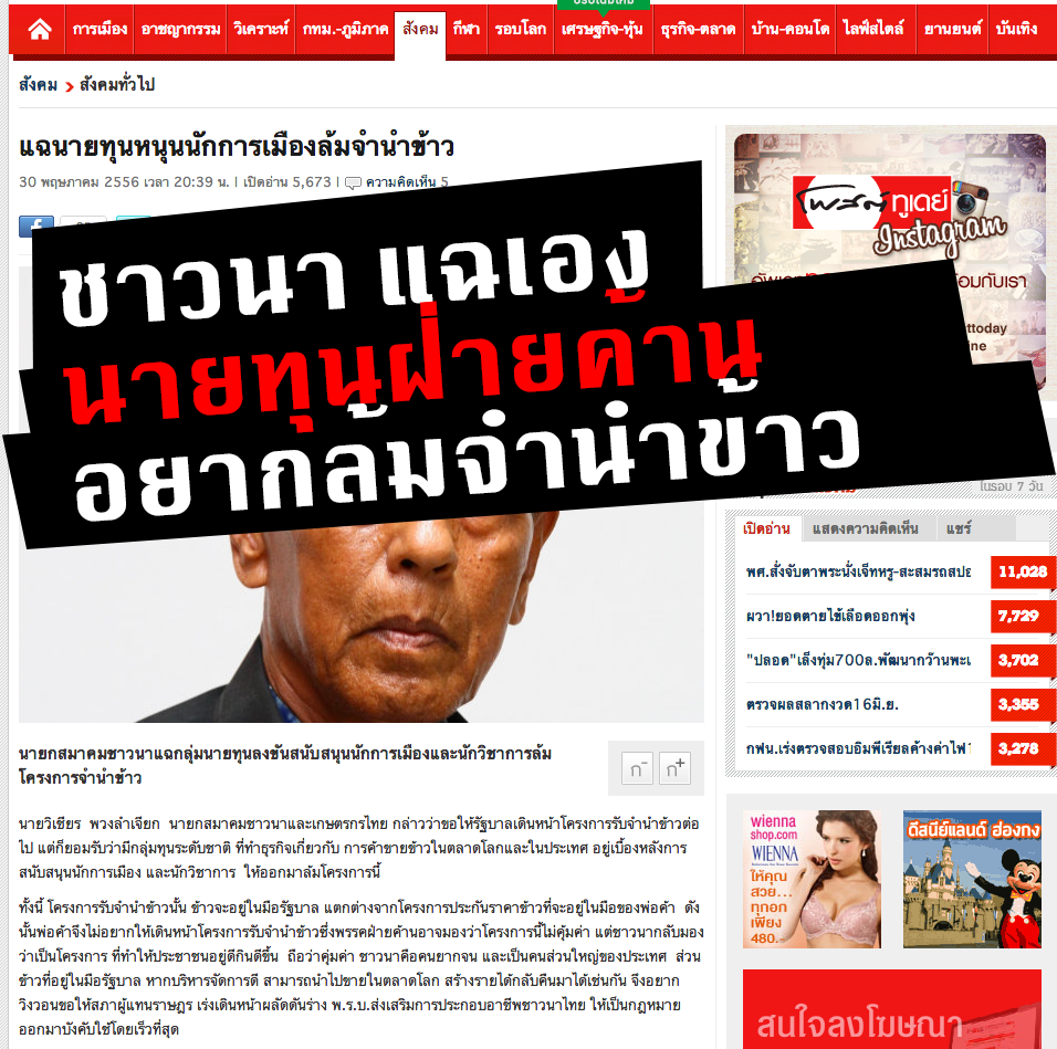 ชาวนา แฉเอง !!! "นายทุนฝ่ายค้าน" อยากล้มจำนำข้าว...................มันเป็นอย่างนี้นี่เอง!!!