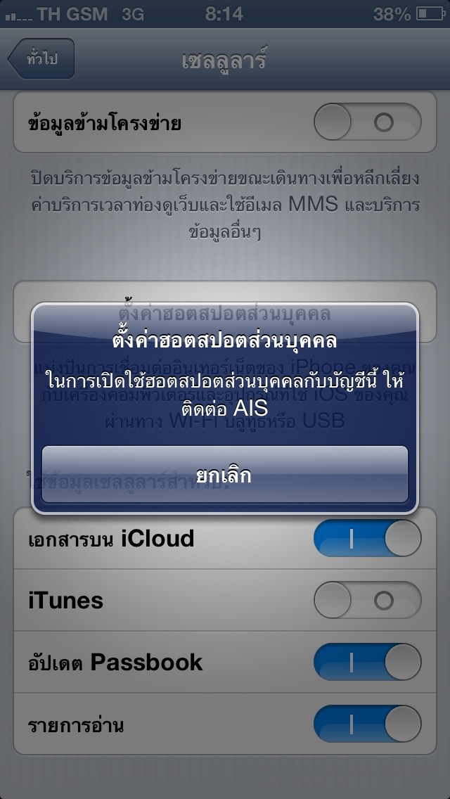 ถึง CC AIS ใช้ Personal Hotspot ไม่ได้ค่ะ iphone5