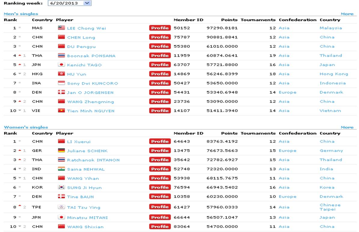 ปล. ถ้าเข้าไปดูรายละเอียดเพิ่ม หญิงเดี่ยวเราติด top 20 ถึง 5 คนแหนะ เจ๋งเหมือนกันนะนี่ กีฬาไทยหลายอย่างช่วงนี้ ประเภทหญิงมาแรง จริงๆ