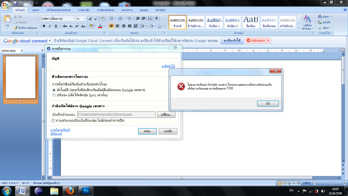 ขอถามวิธี เชื่อมต่อ google cloud connect กับ micosoft office